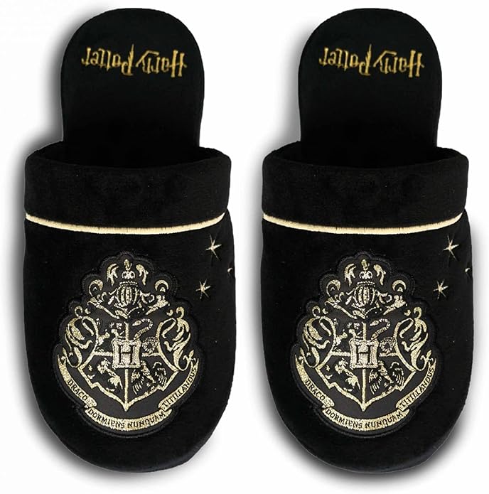 ¡Haz magia en cada paso! Estas pantuflas inspiradas en Harry Potter te sumergirán en el mundo de Hogwarts. Con un diseño elegante que muestra los colores y escudo de la famosa escuela, son perfectas para mantener tus pies cálidos y cómodos mientras disfrutas de tu saga favorita. ¡Un must para todo mago y fanático de Harry Potter!