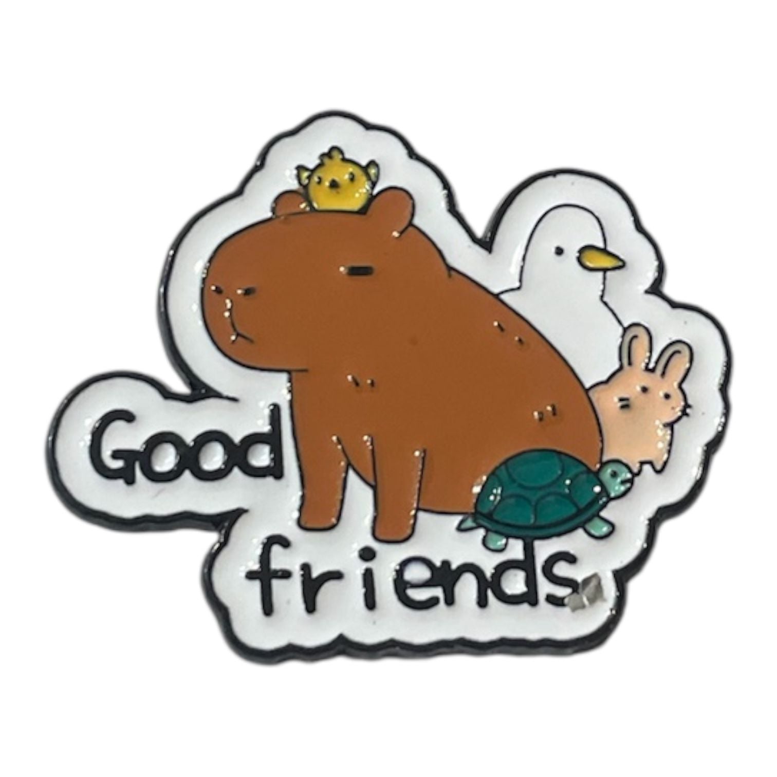 Este pin de Capibara es un accesorio encantador y único que añade un toque divertido a cualquier prenda o mochila. Perfecto para los amantes de la naturaleza y los animales, su diseño detallado captura la esencia tranquila y amigable de la capibara. Fácil de colocar y resistente, es ideal para personalizar tu estilo con un detalle original y simpático.
