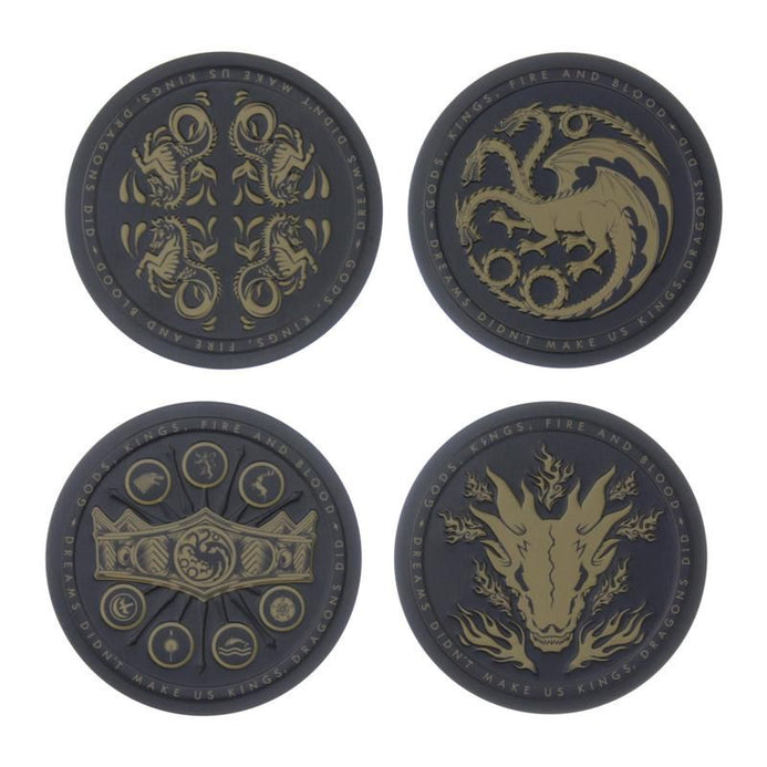 Proteja sus superficies con estos posavasos de metal House of the Dragon.