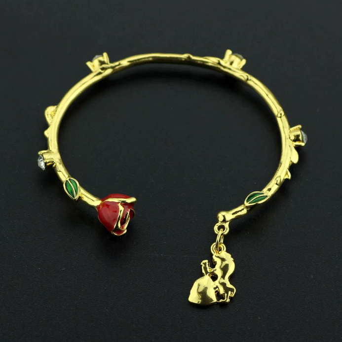 - Pulsera con diamantes de imitación de dibujos animados de la Bella y la Bestia con diseño de flor abierta