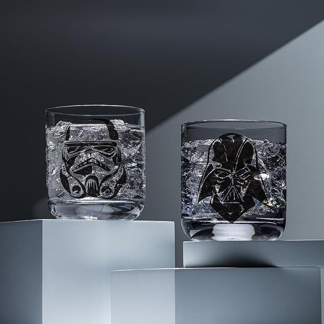 Disfruta de tu whiskey favorito con este set de 2 vasos inspirados en Star Wars, que incluyen diseños de Trooper y Darth Vader. Perfectos para fans de la saga, estos vasos combinan estilo y funcionalidad, ideales para tus momentos de relajación o para compartir con amigos. Lleva la fuerza a tus bebidas con este set único y resistente.
