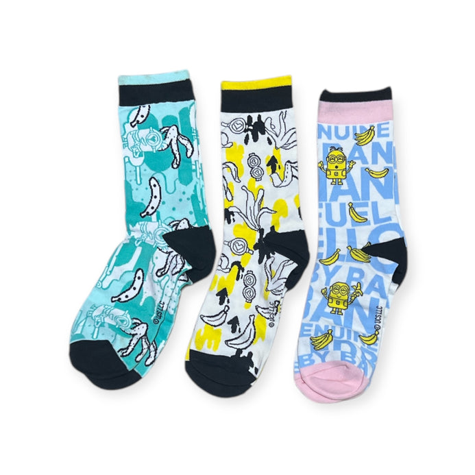 Set de 3 Pares de Medias Minion, divertidas y cómodas, con diseños exclusivos de los adorables Minions. Hechas de material suave y elástico, ofrecen un ajuste perfecto y son ideales para todo el día. Cada par de medias tiene un diseño único que añade un toque de color y diversión a tu look. ¡Perfectas para los fanáticos de los Minions de todas las edades!
