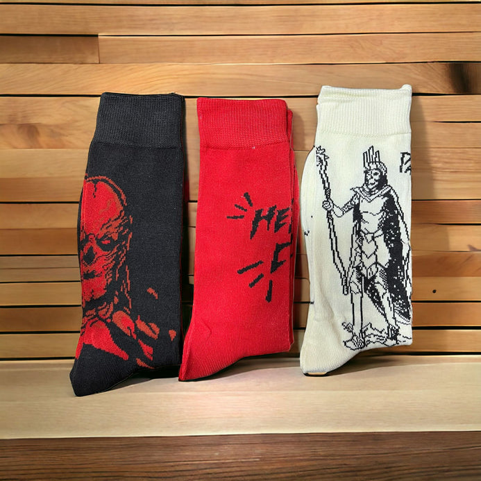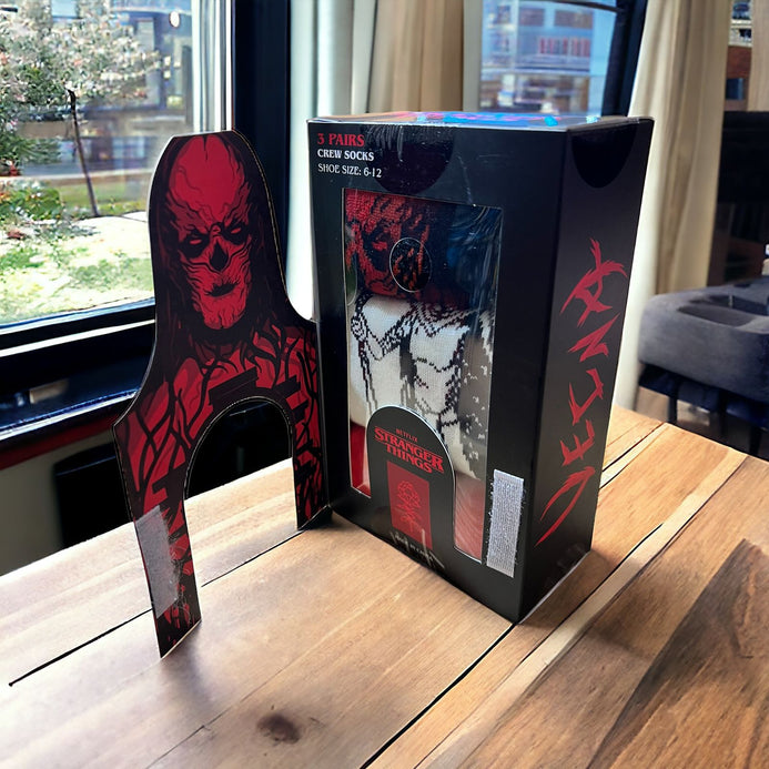 ¡No podrás resistirte a este increíble set de 3 pares de medias inspiradas en Stranger Things! Cada par está diseñado con detalles únicos que te llevarán directamente al mundo de la serie. ¡Confortables y originales, serán una adición perfecta a tu colección de accesorios de Stranger Things!