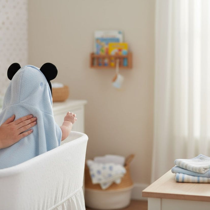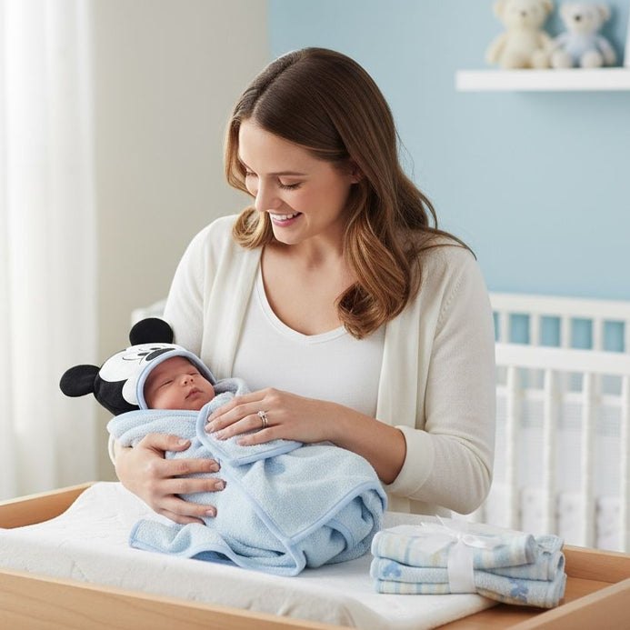 - Set Toalla con capucha y 3 Pañitos Mickey Mouse