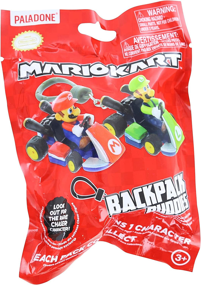 - Celebra la atemporal serie de videojuegos Super Mario con estos coleccionables Backpack Buddies protagonizados por corredores de Mario Kart El surtido misterioso contiene 8 personajes diferentes de Super Mario Kart para coleccionar