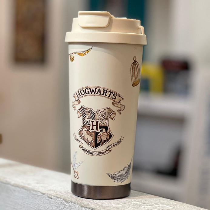 Disfruta tu café favorito con este vaso con tapa inspirado en Hogwarts de Harry Potter. Su diseño exclusivo te permite llevar tu bebida con estilo y evitar derrames gracias a su tapa segura. Perfecto para fanáticos que quieren mantener su café caliente mientras muestran su amor por el mundo mágico. Ideal para uso diario o como un regalo especial.